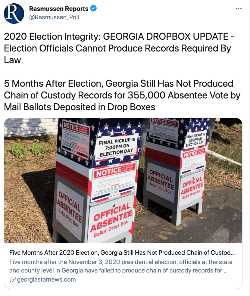 Why can’t Georgia produce chain of custody records for 355,000 absentee vote by mail ballots deposited in drop boxes?
